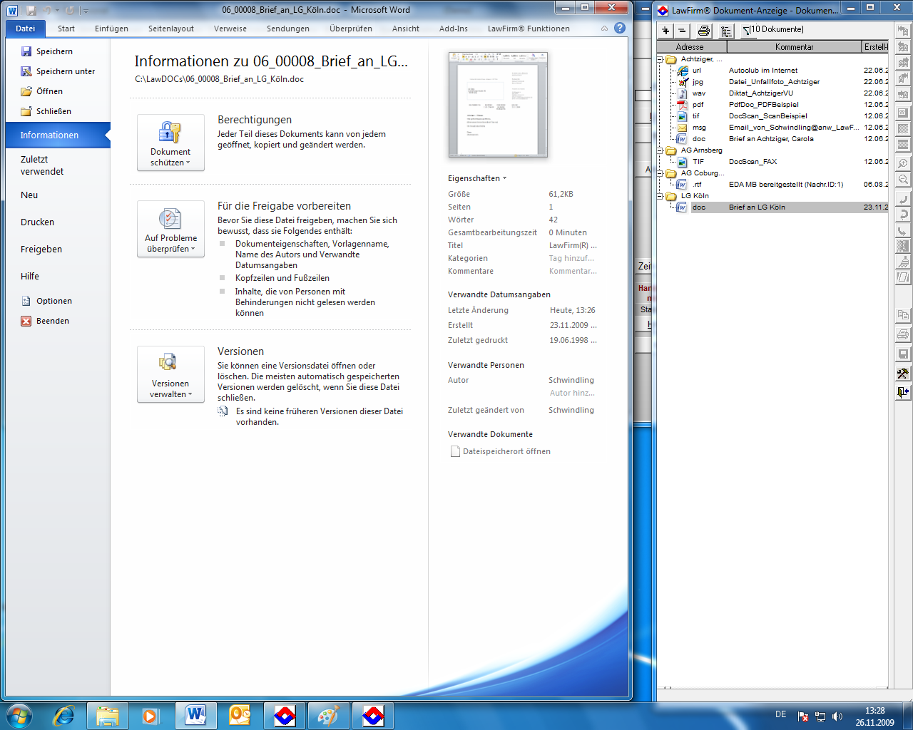die neue Office Version 2010 (Beta) mit der kommenden LawFirm® Version,
