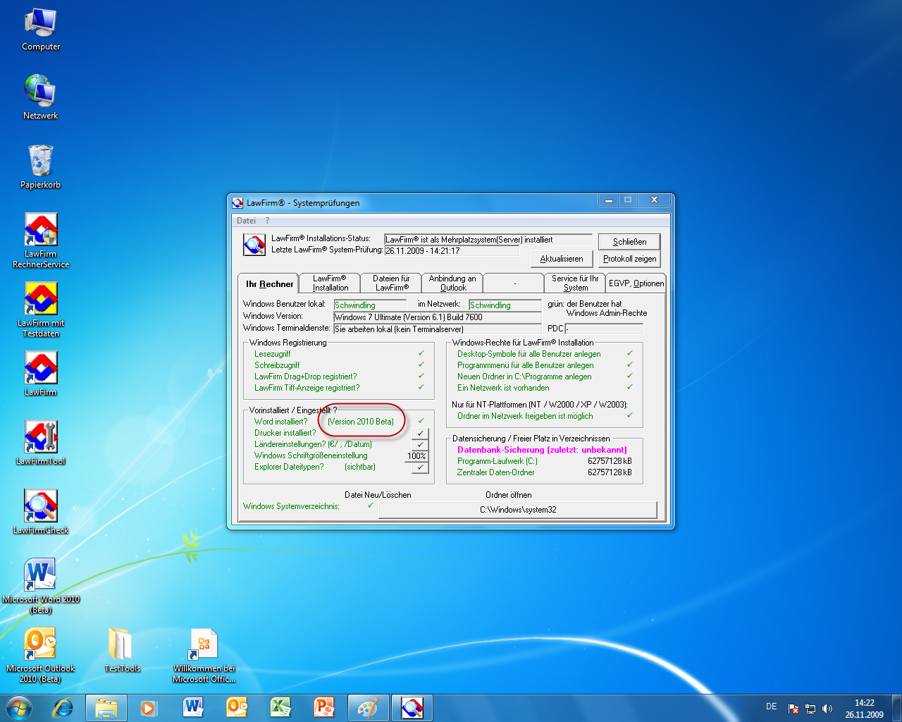 LawFirm®-Programmstart und im LawFirm®-Rechnercheck