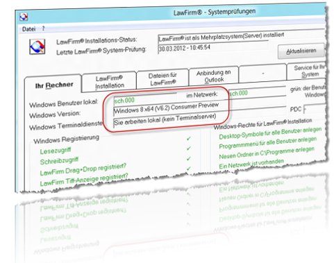 Windows® 8 und der LawFirm® Version 8.2p-4: