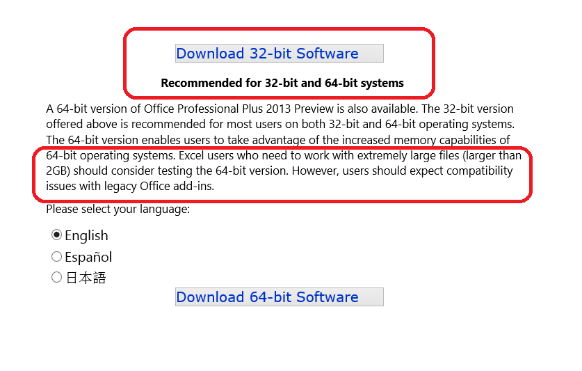 Office 2013 Preview-Vollversion: für einen Test der Einbindung in LawFirm® ist die Installation einer Vollversion von Office 2013 erforderlich. Die Möglichkeit, diese Fassung der Office 2013 Preview-Version herunterzuladen, finden Sie hier (ganz unten unter "Download msi Package..."). Achtung: auch auf einem 64 Bit Rechner unbedingt die 32-Bit Version verwenden; von der 64-Bit Version von Office 2013 rät Microsoft abgesehen von seltenen Ausnahmefällen ab, s. u.): http://technet.microsoft.com/en-US/evalcenter/hh973391.aspx?wt.mc_id=TEC_114_1_33
