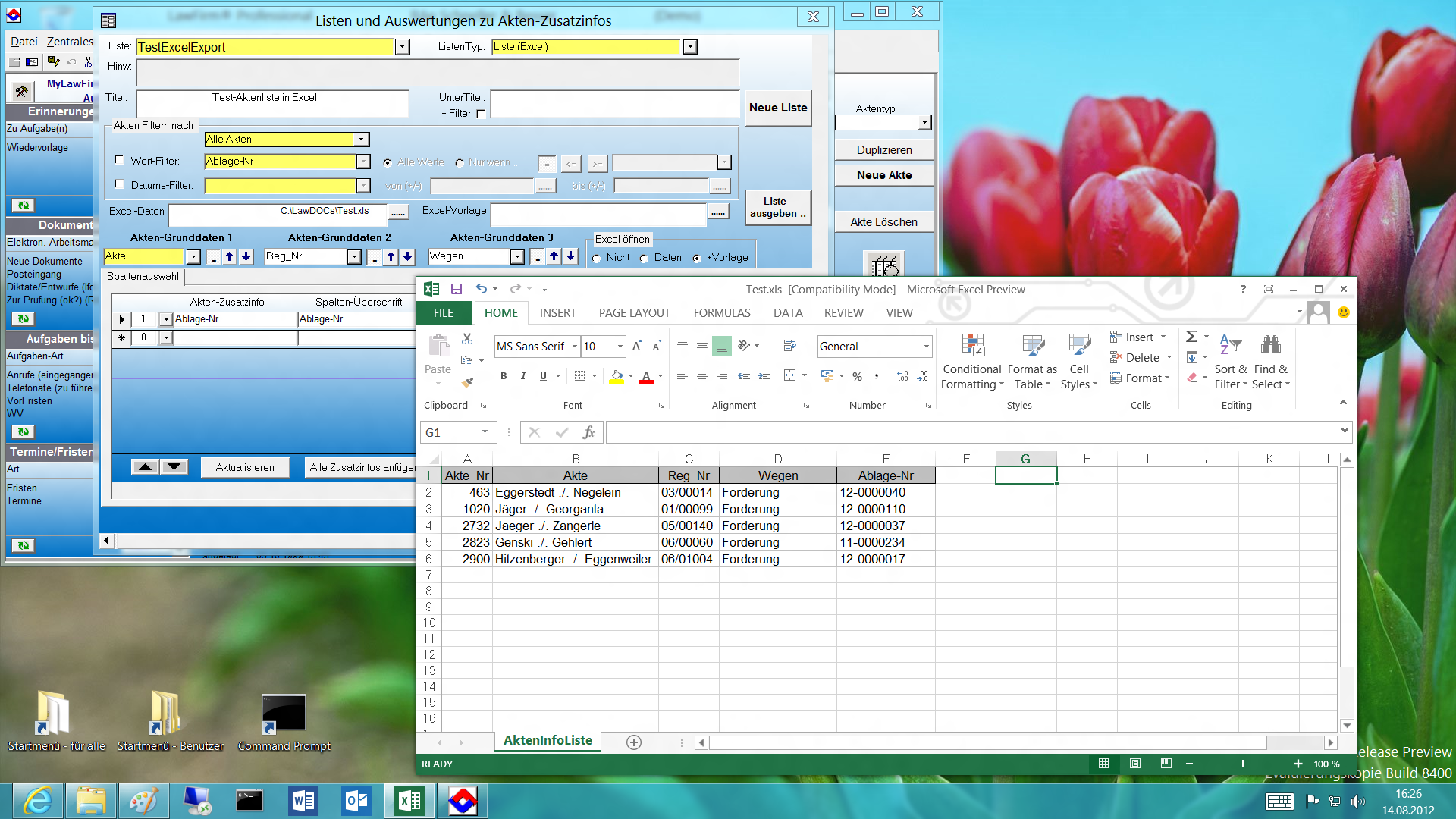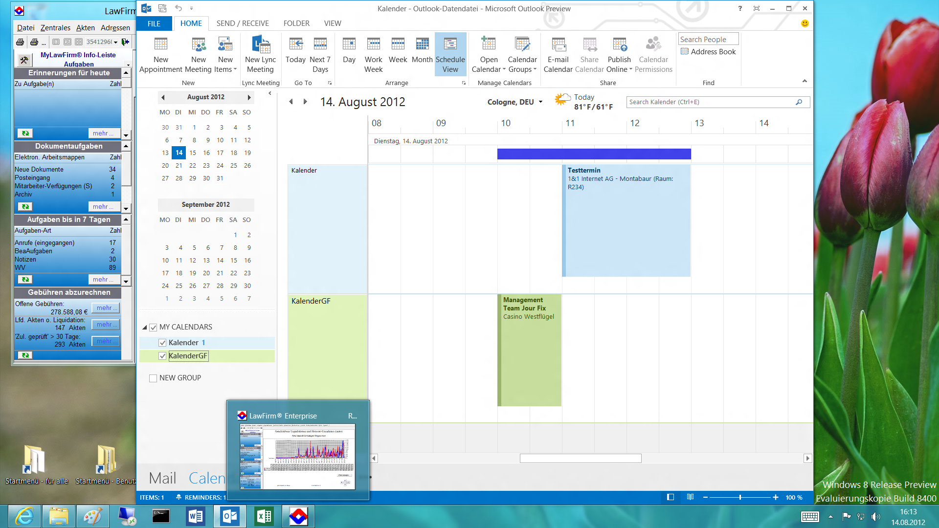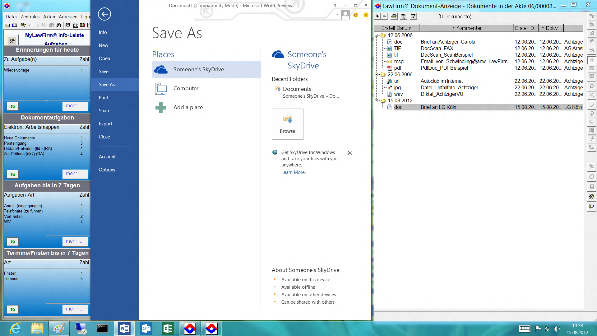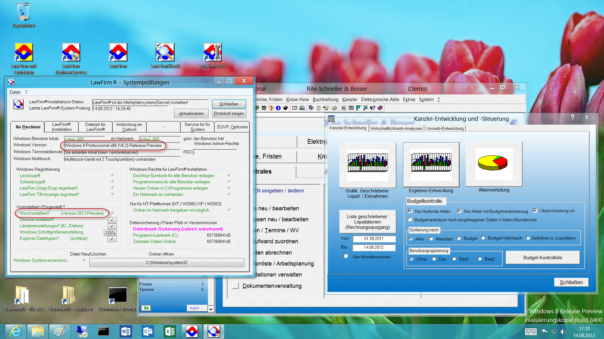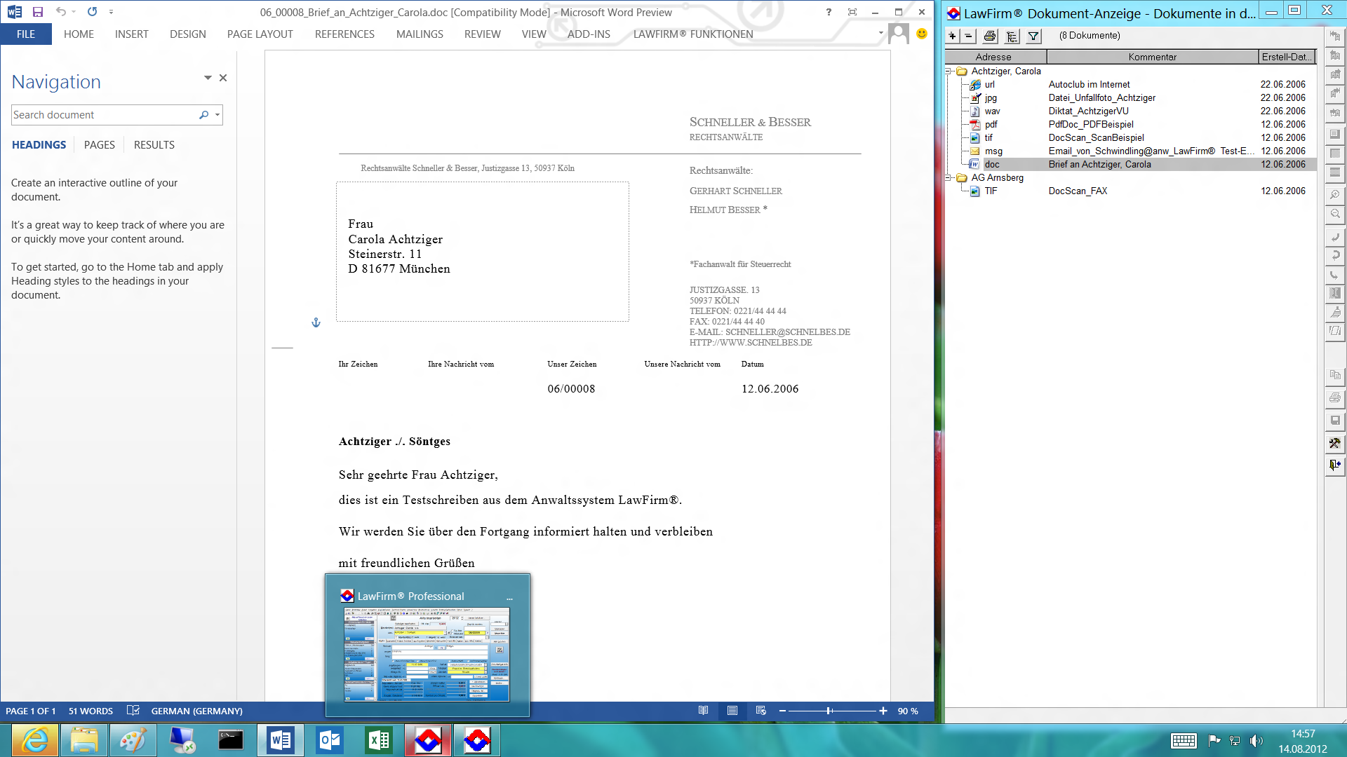 | Bilder aus den LawFirm Tests unter Office 2013 (Preview) unter Windows 8 - Stand 14.08.2012 | ||||||||||||||||||||||||||||||